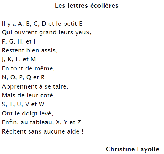 Voici la poésie de Christine Fayolle qu’il faut apprendre :