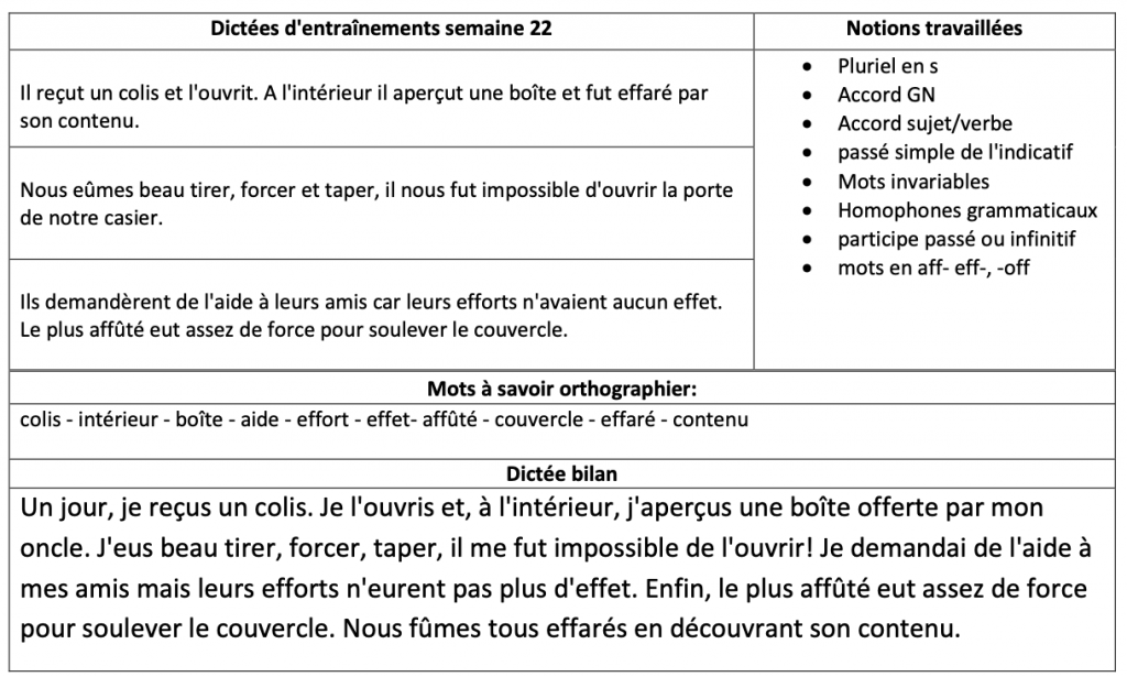 Voici les dictées pour cette semaine :