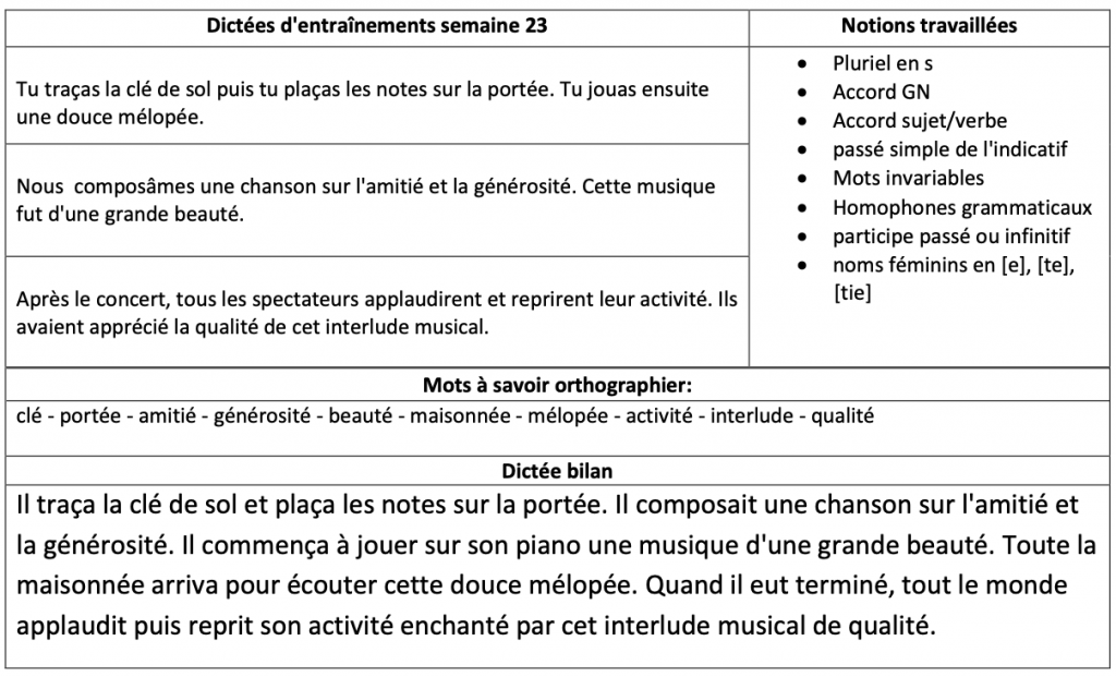 Voici tout d’abord les dictées de cette semaine, je distribuerai la fiche lundi à ceux qui n’étaient pas là vendredi dernier.