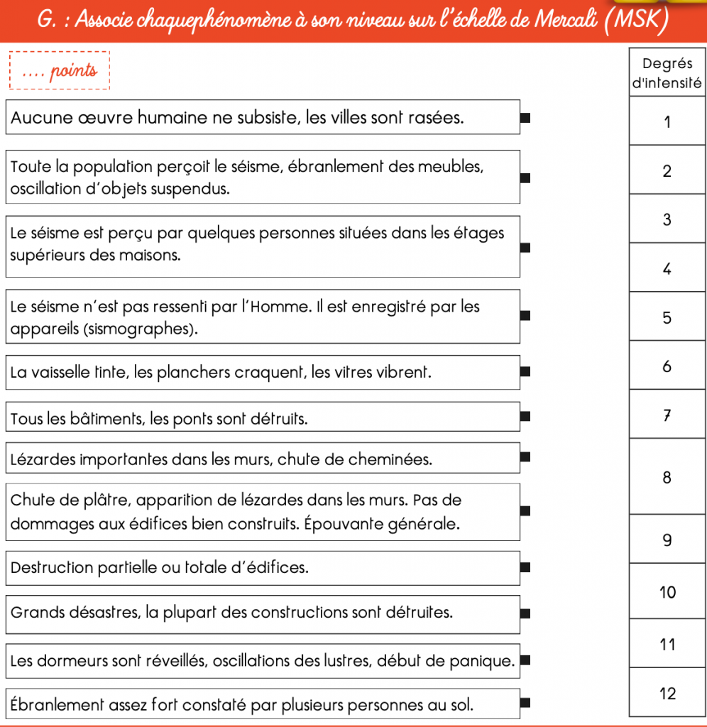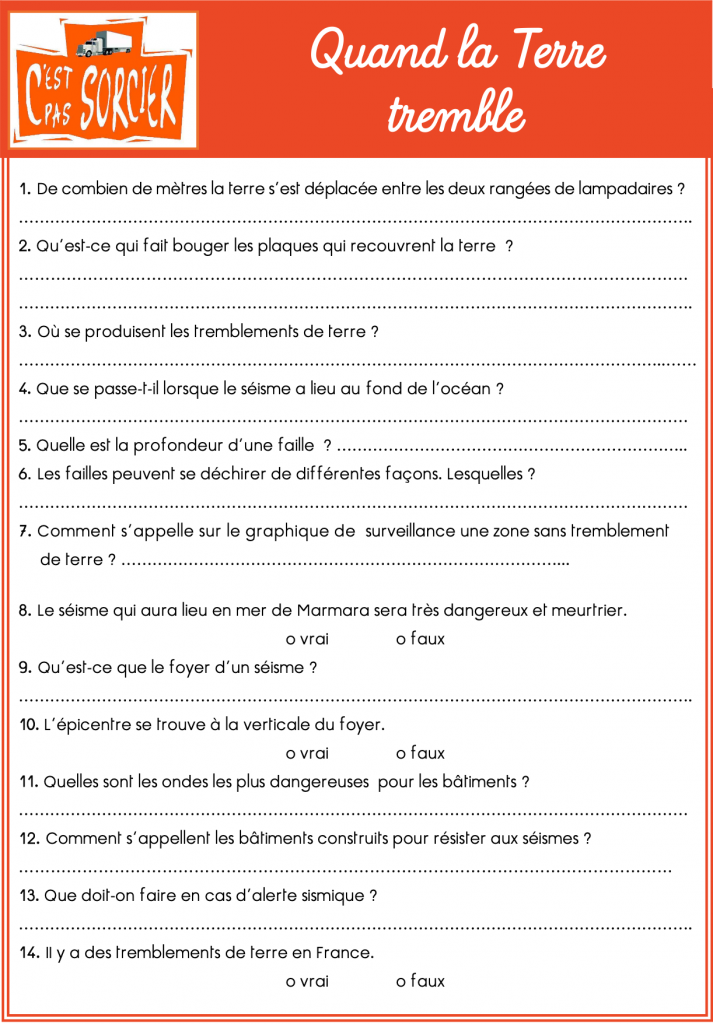 Le premier exercice est à faire à l’aide de la leçon, le second est un questionnaire à compléter pendant le visionnage de la vidéo C’est pas sorcier, Quand la Terre tremble