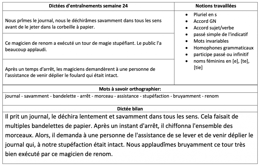 Voici les dictées de cette semaine :